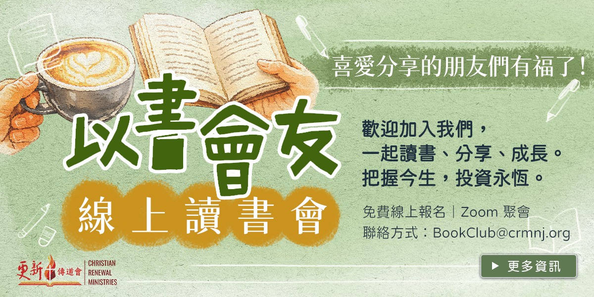 Christian Renewal Ministries Mission & VisionChristian Renewal Ministries NIV Study Bible有聲書尋道本聖經以福音為中心的領導以書會友研讀本聖經更新書房 App三百團契更新月刊Heading layerCRM Video Intro 詳細內容請點擊以上圖片進入各項專欄… 查詢有關 NIV中文版電子聖經, 更新學院近期課程報名, 講座, 讀書會, 更新書房電子禮券.....請按此鍵 初期教會暨使徒保羅行蹤II——蒙特內哥羅、阿爾巴尼亞、北馬其頓、希臘14 天 9/16/25 ~ 9/29/25 10/12/2024 更新聖經講座—彌賽亞詩篇 報名請按此鍵 2025 陳俊南老師語文課程希伯來文初階,希伯來文/希臘文查經 報名請按此鍵 異象 我們的異象是藉著各種管道和媒體,讓我們的事工能幫助華人信徒在主裡成長,靈命得以更新,進而幫助教會更新。我們的座右銘是「信徒更新、教會更新」 奉獻支持 三百團契 文字事工 中文聖經更新月刊更新書房 宣教事工 泰北事工 緬甸事工 外蒙古事工 傳道事工 更新講台 釋經講道 門徒訓練 更新學院 神學課程 事奉裝備 讀書會/讀經營/退修會 更新書房 要住在聖經裏,但要多多拜訪好書 — 司布真 試讀購買 更新月刊 歡迎登入更新網站,您的註冊加入將會在每個月和其他喜愛更新月刊的多年讀者羣一樣,按時收到內容豐富的更新月刊。並在第一時間知道更新最新動態和各種屬靈的新書推薦分享和優惠 訂閲 更新學院 「更新學院」Institute of Theological Seminars(簡稱ITS)與美國「哥倫比亞國際大學神學院」(簡稱SSM)有正式合作計畫。更新學院的師資 均頗負盛名 ,教學經驗豐富美善品格。目前亦舉辦影視教學和網上同步教學,歡迎讀者踴躍參加。 更多了解 門徒訓練 透過創作性,系統性和傳遞性的教材,以一對一的方式讓學員在基本信仰與實際生活的應用上扎根,并帶領他人以同樣方式在靈命上進深,成爲主的門徒。 更多了解